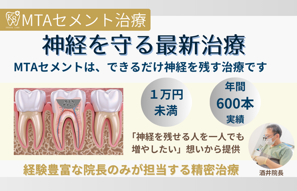 京王八王子駅前歯科・矯正歯科のMTAセメント治療は、月50本、年間600本以上の実績があります。